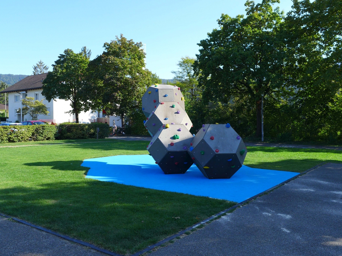 Die Gemeinde Aesch hat sich für einen Vierfach-Würfel entschieden. Da die maximale Fallhöhe unter 3 Meter liegt und weil ein entsprechender Fallschutzbelag aus EPDM Gummi eingebaut wurde, wird für die Benutzung der frei zugänglichen Kletter-Raupe keine Überwachung benötigt.