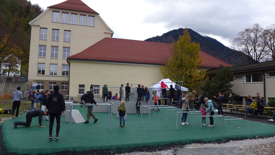 Vom Klimmzug an der Street Workout bis zum Riesen Sprung an den Parkour Anlagen ist alles möglich. «Der Hintergarten Quader-Montalin wurde zum Treffpunkt für alle sportbegeisterten Churer und Churerinnen, die sich gerne bewegen oder einfach nur zuschauen möchten.»