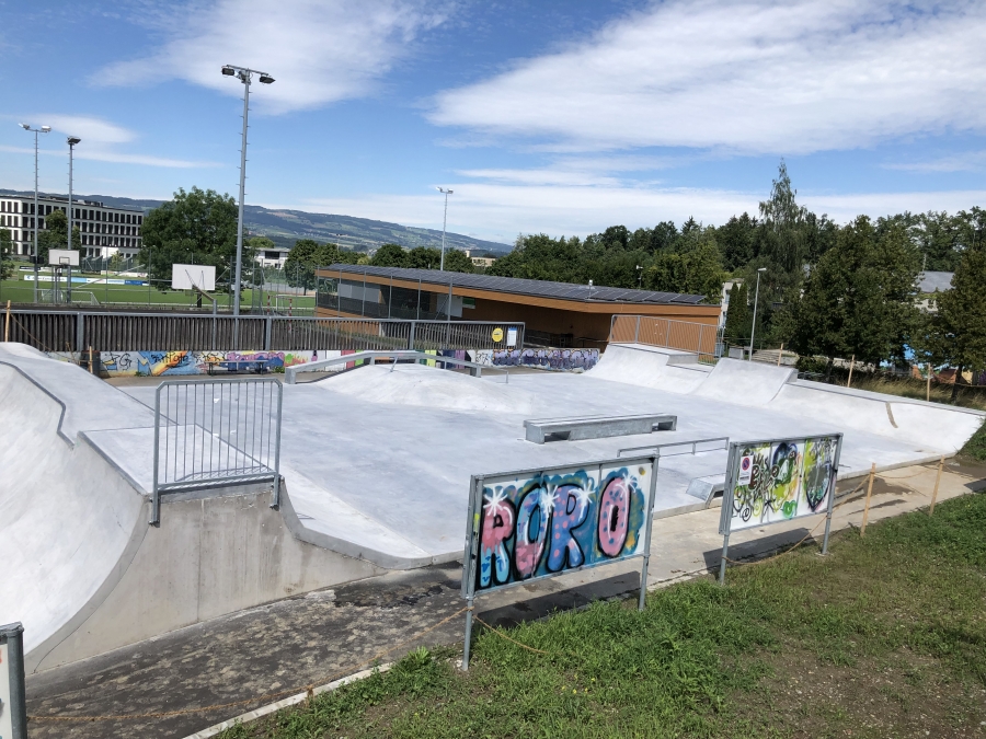 Diesen Sommer konnten wir in der Gemeinde Hünenberg einen neuen Betonskatepark bauen, der einen älteren, nicht mehr zeitgemäßen, Beton-Elemente auf Asphalt, Park ersetzte.