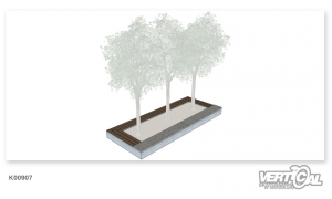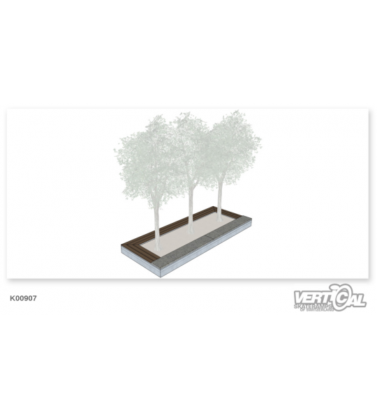 Grosser Pflanzenkübel mit Granit Curb / Sitzflächen aus Holz