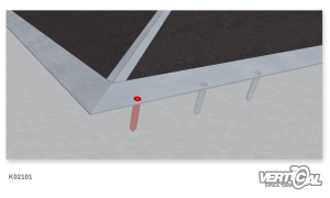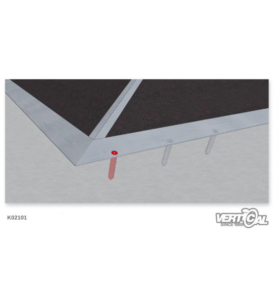 Spalt zwischen Asphaltboden und Übergangsblech minimieren durch Befestigung des Übergangsblechs mit Asphaltschrauben. Anzeichnen, Bohren und Ansenken Übergangsblech, Gerät mit Hebegerät anheben, Asphalt bohren, Asphaltanker mit 2-K Asphaltmörtel einkleben, Gerät wieder senken und auf Bohrungen ausrichten, Senkschrauben M10 x 50 festziehen.