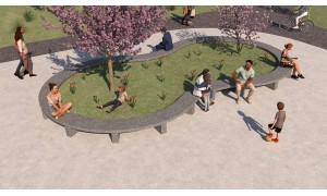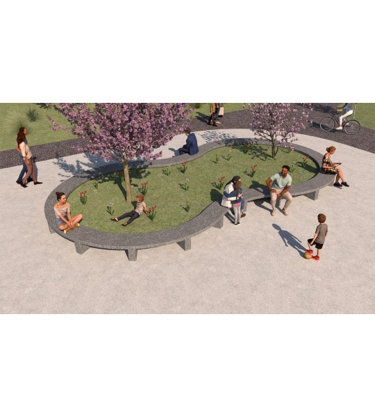 A bench under the trees. This bench made of granite slabs serves as a shaded seating area and can also be used as an ideal demarcation for a tree grate. In combination with a tree, the result is a harmonious space to linger in the urban space. Thanks to the 8 cm thick granite slabs, the material only heats up very slightly in summer and thus serves as a comfortable bench even in strong sunlight. Foundations on site according to our plans or according to request.