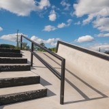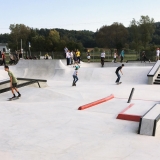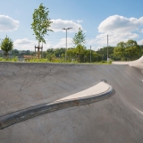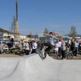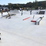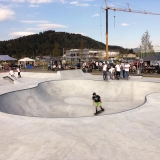 On September 30 2018, the opening of the new concrete skate park in Schopfheim took place. It is located at Schopfheim's suburban train station West. The skate park, which is 700 m2 large and was planned by Vertical Technik AG from Frenkendorf and built by Maxi Häring from Munich, was tested until late into the evening. The skatepark contains a bowl, a triple set with handrails and hubbas, an a-frame and a manual pad with slappy curb. The park was planned in collaboration with local skaters and the Youth Parliament during a workshop held by Vertical. The construction required 180 cubic meters of concrete and 4 tonnes of steel. The users are very excited about the new skate park. Despite the large number of people that showed up on the day of the opening, the atmosphere was excellent: