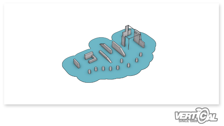 Concrete walls built according to SIA 118, with edges and surface grip specifically designed for parkour. Installed on on-site foundations according to our plans.