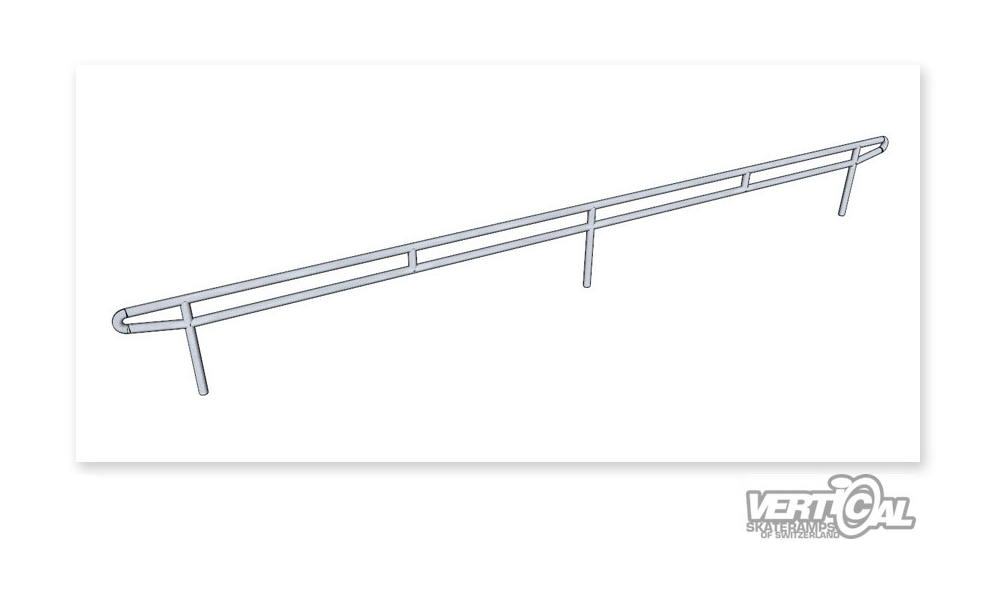 A rail or railslide is used to jump onto the bar with an ollie and slide along it. Grinds or slides are performed with the skateboard positioned across or along the rail. Thousands of tricks and variations can be performed on this module. From simple boardslides to complex trick combinations, anything is possible. This rail is a fundamental module for any skatepark and is suitable for all skill levels.