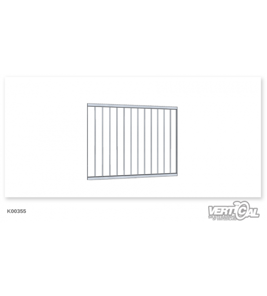 Construction robuste en tubes carrés d'acier soudés et galvanisée, structure connecté avec des barreaux verticales en fer rond 12 mm.