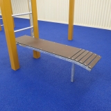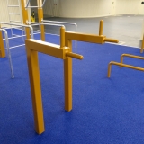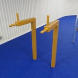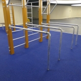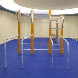Sur cette variante, des crochets ont été fixés sur les poteaux de la structure, permettant d’y fixer des bandes de résistance et faire des exercices encore plus variés.
