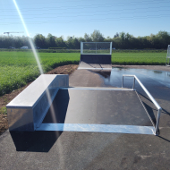 Les fans de trottinettes trouveront une impressionnante fly box, également appelée step-up box, qui ne manquera pas de vous surprendre. On y trouve également un bank to curb avec un élégant curb en granit, ainsi qu'un coffre de toit avec rail et rebord de toit, également recouverts de granit de haute qualité. Ces éléments offrent un large éventail de possibilités pour des figures créatives.
