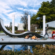 Après que la sculpture "A new Chapter" se soit dressée devant l'entrée principale du Musée Olympique de Lausanne depuis juin 2021, elle a été transportée par hélicoptère le 13 mars 2023 vers le nouvel emplacement du skatepark de Vidy.