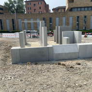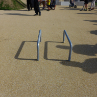 Die Parkour-Anlage besteht aus robusten Betonelementen mit sandgestrahlten Oberflächen in verschiedenen Höhen. Metallstangen laden zum Schwingen und Hangeln ein, während kleine Mauern für präzise Landungen und schräge Ebenen für kraftvolle Absprünge genutzt werden können. Der gesamte Bereich ist mit einem Fallschutzbelag aus EPDM-Gummi ausgestattet. Ein besonderes Highlight ist die Human Flag Stange, die zusätzlich auch für Pole Dance-Übungen genutzt werden kann.