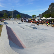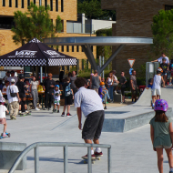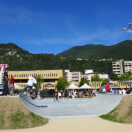 - 18:00 Uhr – Begrüßung durch die Gemeinderäte, Banddurchschneiden und Eröffnung mit Skate-Shows von Momò Skateboarding