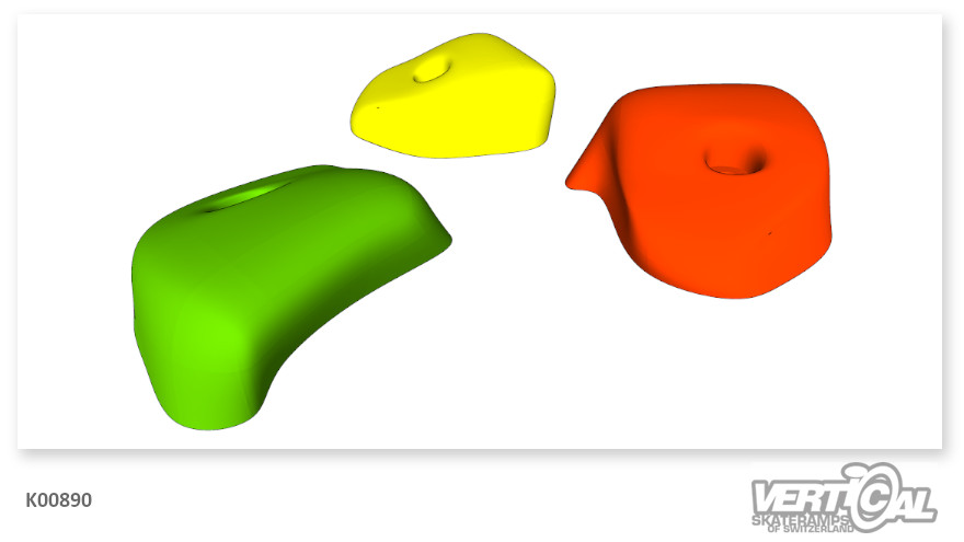Professionelle Klettergriffe mit rauer Oberfläche für einen sicheren Griff. Befestigt werden selbige mit M10 Sicherheitsschrauben.