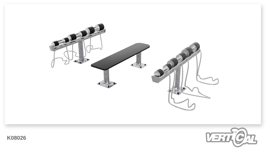 Dieses Set ermöglicht ein umfassendes und effektives Outdoor-Training für verschiedene Muskelgruppen und fördert die allgemeine Fitness. Mit verketteten und somit diebstahlsicheren Hanteln.